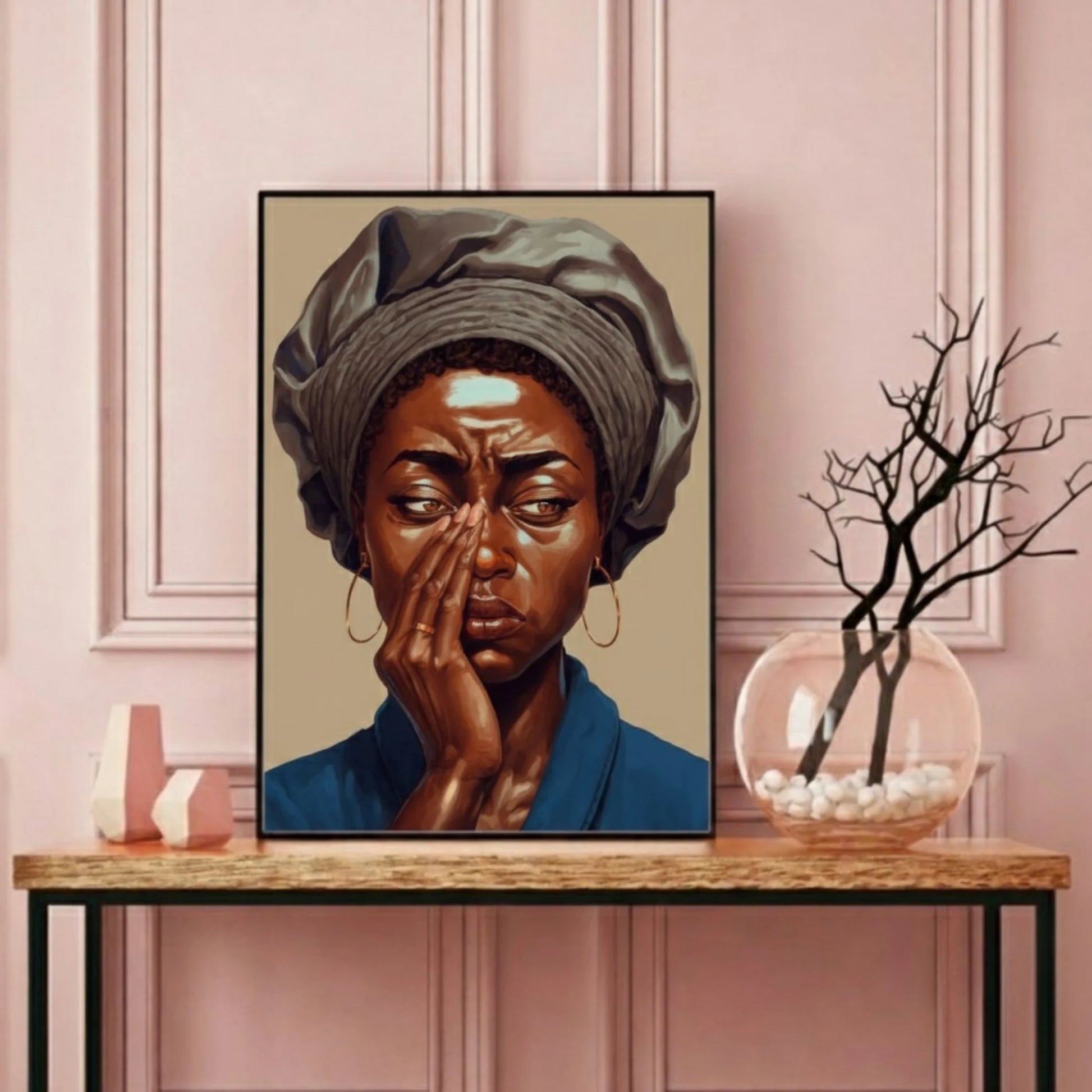 This Black Girl Stank Face Art brings a playful yet aesthetic mood, offering a chic afrocentric wall art touch that elevates your décor. With its neutral wall art finish, african american art influence, and unique stink face poster style, it enhances modern interiors effortlessly.