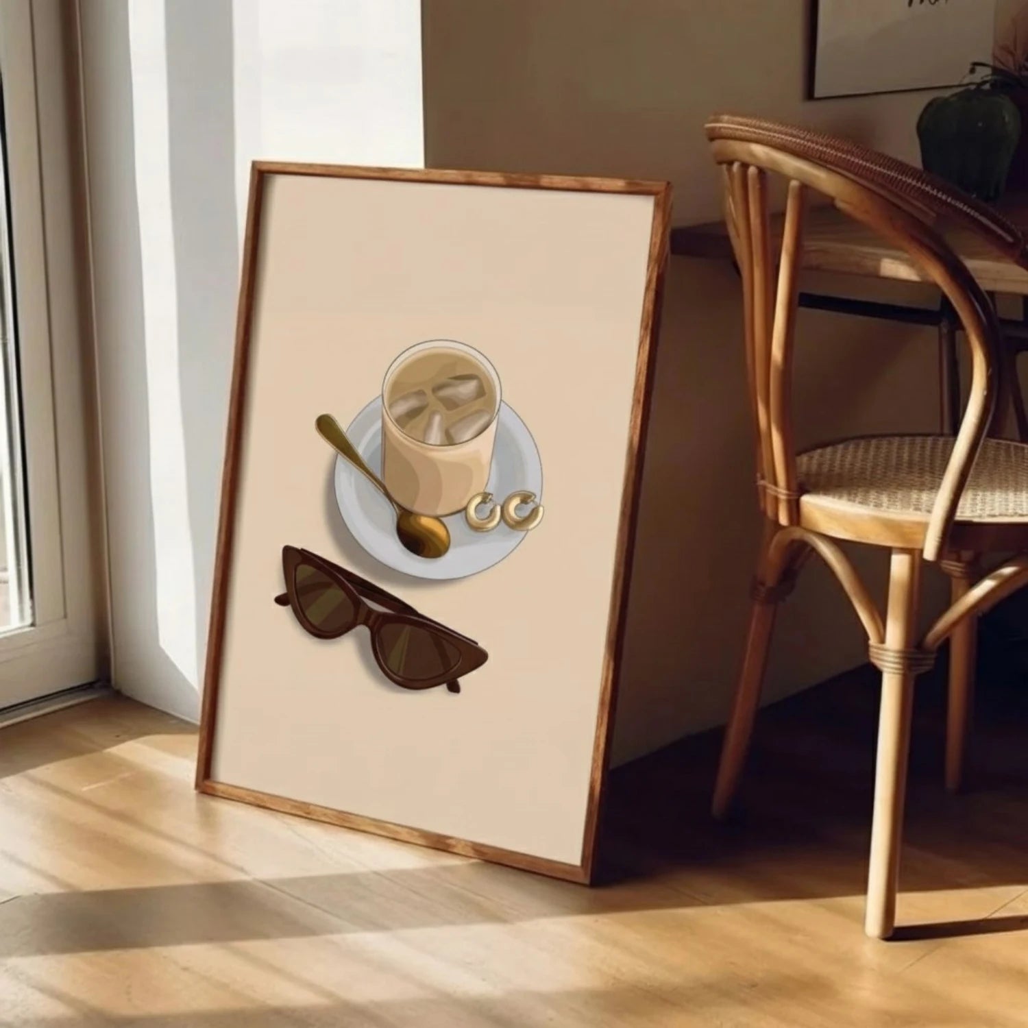Bring soft, modern charm to your space with this Minimalist Iced Coffee Wall Art with Sunglasses, designed for warm, neutral interiors. Featuring minimalist iced coffee art print detailing, this piece blends coffee aesthetic wall decor, aesthetic coffee cup print, and cozy café style art print to elevate any kitchen or coffee nook