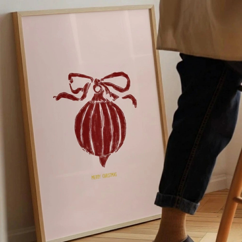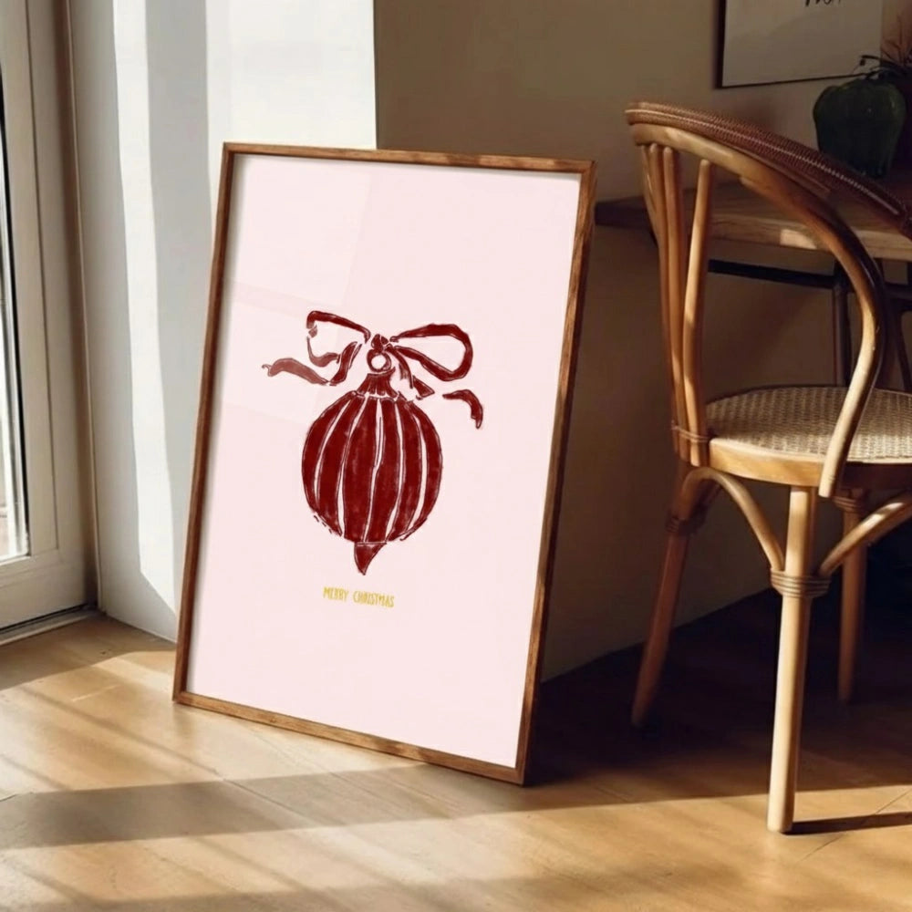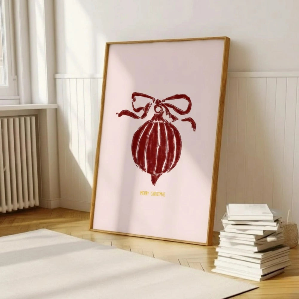 This Red Ornament Ball Christmas Wall Art adds gentle festive charm with scandi christmas ornament print and red holiday decor art elements, creating a warm, minimalist winter atmosphere perfect for modern homes