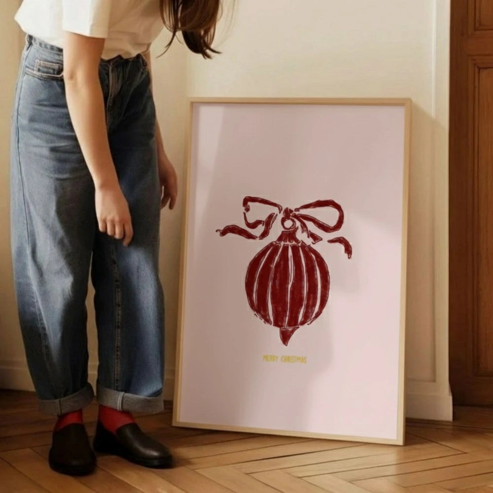 Bring a warm festive touch to your space with this Red Ornament Ball Christmas Wall Art, a minimal holiday print designed for modern seasonal décor. Featuring a clean aesthetic, this piece beautifully blends red ornament ball wall art, minimal christmas ornament print, and holiday ball decor poster elements to elevate any winter-inspired interior with quiet elegance.