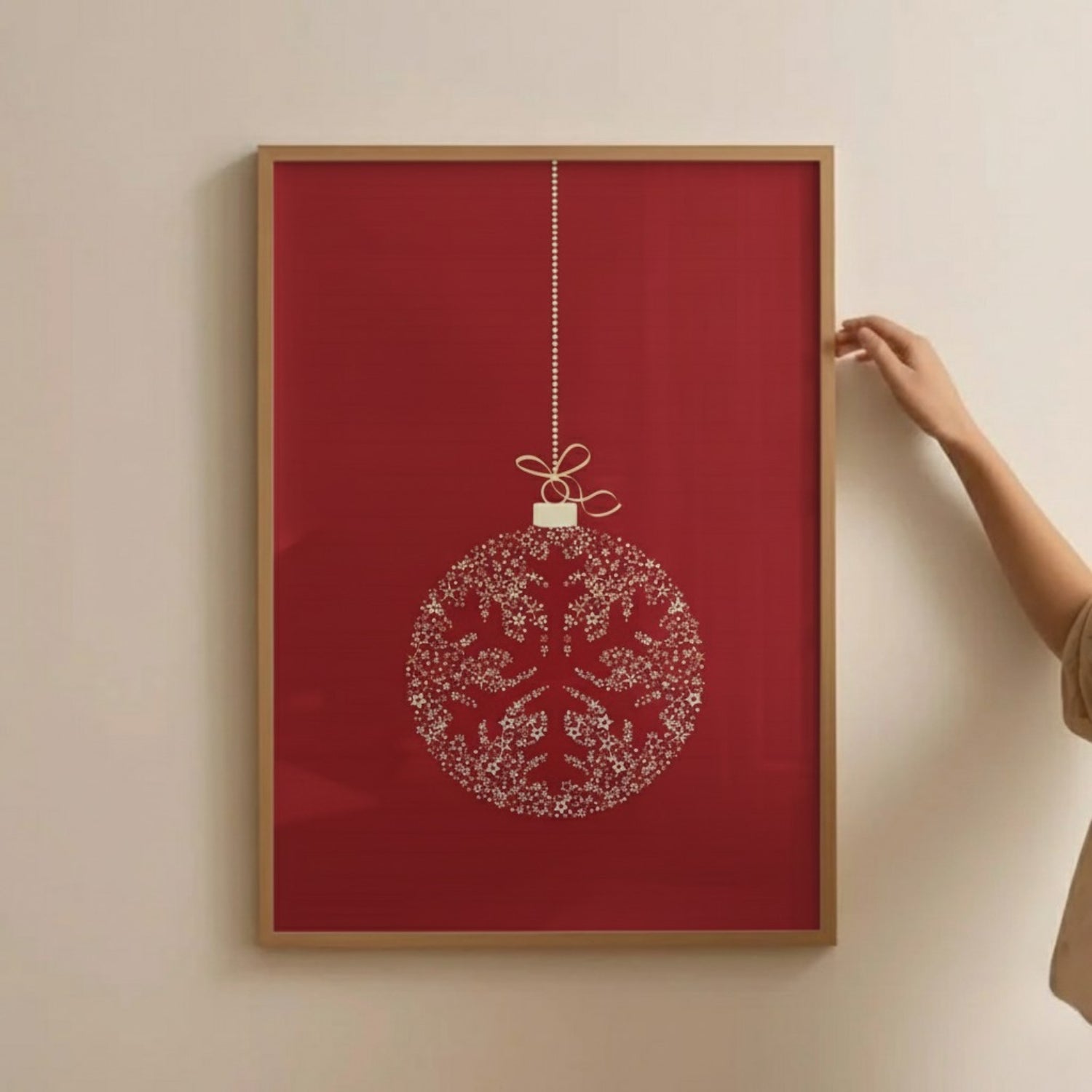 Bring festive charm into your home with this Red Ornament Snowflake Christmas Wall Art, a warm and elegant piece designed to elevate your seasonal décor. Featuring rich red ornament wall art accents, a delicate snowflake Christmas print, and a modern festive holiday decor poster look, this premium artwork instantly adds cozy, Scandinavian-inspired beauty to any space.